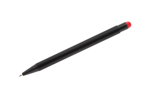 NIRO to długopis z wyjątkowym efektem znakowania. Kolor grawera jest zbliżony do koloru końcówki touch do obsługi ekranów dotykowych. Korpus wykonany z aluminium pokrytego gumowaną powłoką typu soft touch. Wykończenia w kolorze czarnym. Długopis automatyczny. Wkład typu G2 w kolorze niebieskim.