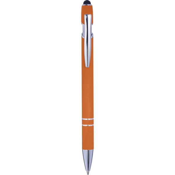 Długopis, touch pen, kolorowy gumowany trzon i srebrne elementy