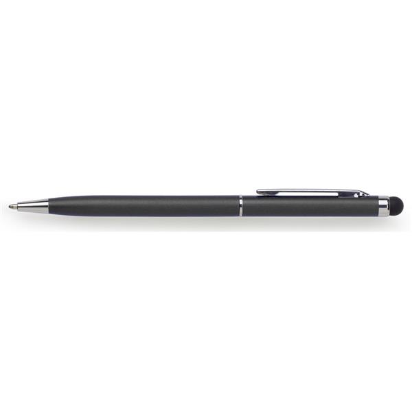 Długopis, touch pen, przekręcany, końcówka touch pen umożliwia obsługę ekranów dotykowych, wkład w niebieskim kolorze, wykonany z aluminium