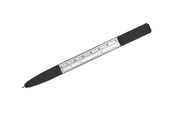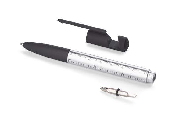 Praktyczny SET w małej formie mieści aż 8 przydatnych funkcji: długopis, końcówka do obsługi ekranów dotykowych, czyścik ekranów, stojak do telefonu, 2 śrubokręty, 2 linijki (calowa i centymetrowa). Wykonany z tworzywa sztucznego. Mechanizm typu twist. Wkład typu X20 w kolorze niebieskim.