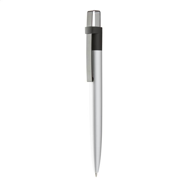 Aluminowy długopis z niebieskim wkładem. W czarnym pudełku prezentowym.