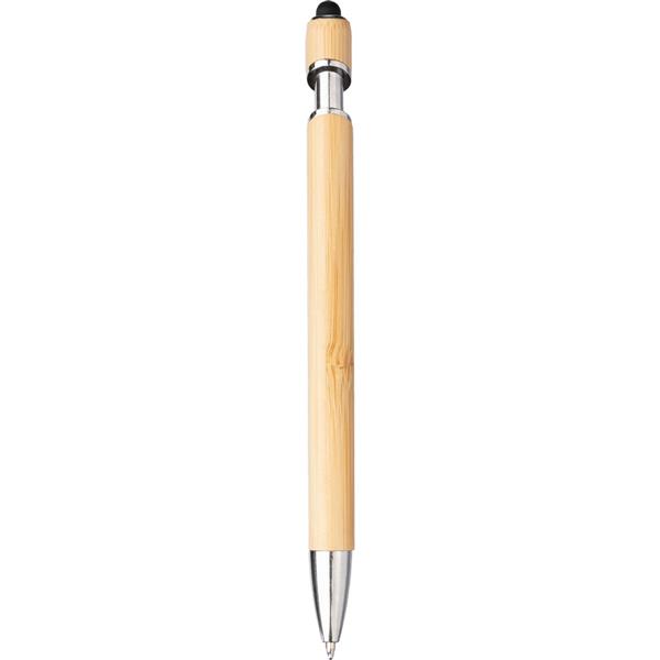Długopis z metalowym klipem, można go przyczepić do notatnika lub koszuli, posiada czarny wkład, produkt wykonany z bambusa