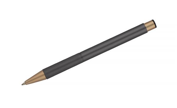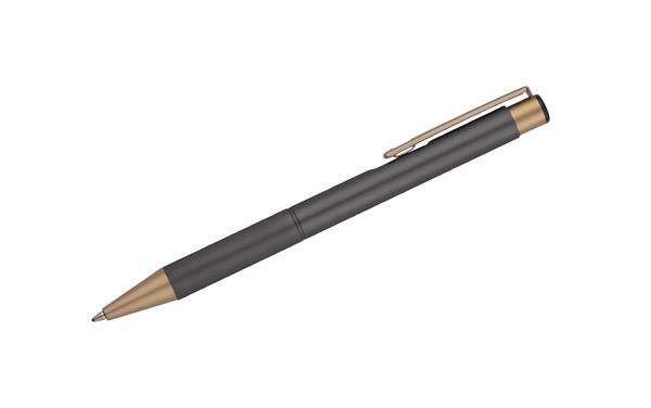 Długopis VITE to elegancki model wykonany z metalu, wyposażony w automatyczny mechanizm wysuwu. Korpus w matowym wykończeniu kontrastuje z chromowanymi detalami i klipem w kolorze szampańskiego złota. Długopis posiada wkład typu G2 z tuszem półżelowym o grubości pisania 1,0 mm, który zapewnia płynny, równy zapis. Dzięki solidnej konstrukcji i starannemu wykończeniu stanowi idealny gadżet reklamowy dla osób ceniących nowoczesny design i precyzję pisania.