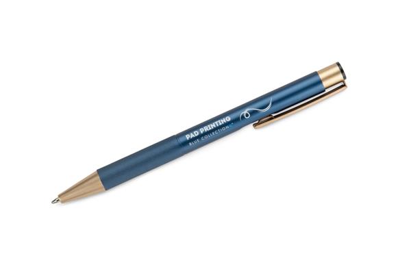 Długopis VITE to elegancki model wykonany z metalu, wyposażony w automatyczny mechanizm wysuwu. Korpus w matowym wykończeniu kontrastuje z chromowanymi detalami i klipem w kolorze szampańskiego złota. Długopis posiada wkład typu G2 z tuszem półżelowym o grubości pisania 1,0 mm, który zapewnia płynny, równy zapis. Dzięki solidnej konstrukcji i starannemu wykończeniu stanowi idealny gadżet reklamowy dla osób ceniących nowoczesny design i precyzję pisania.