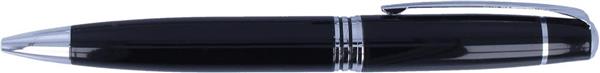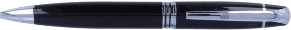 Metalowy przekręcany długopis w aluminiowym pudełku. Metalowy wkład z czarnym tuszem.
