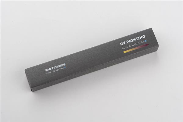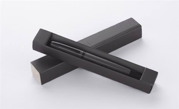 RIO to elegancki długopis zapakowany w papierowy kartonik dopasowany kolorystycznie do obudowy długopisu. Matowy kolor ładnie kontrastuje z czarnymi wykończeniami. Długopis z mechanizmem typu twist, z wkładem typu G2 w kolorze niebieskim.