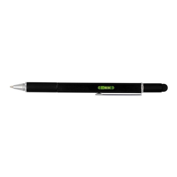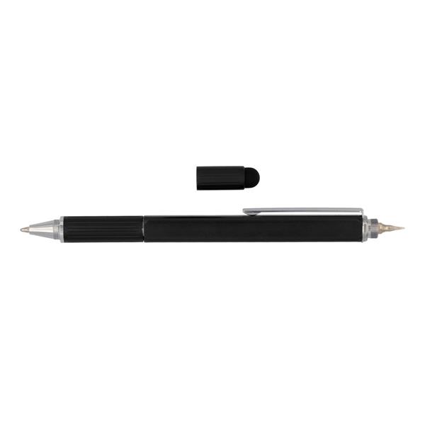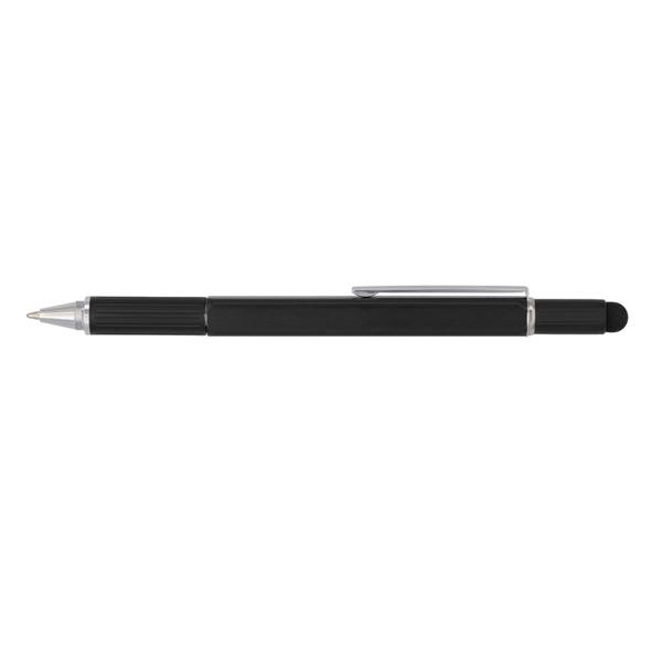 Długopis wielofunkcyjny, aluminiowy korpus, linijka, poziomica, podwójny wkrętak (płaski i krzyżak), touch pen