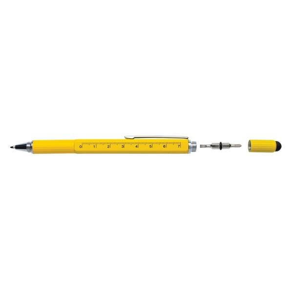 Długopis wielofunkcyjny 5 w 1, linijka 7 cm, poziomica, śrubokręt, touch pen, wykonany z wysokiej jakości mosiądzu, aluminiowy klip, długość pisania do 400 m