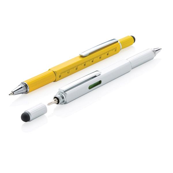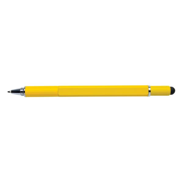 Długopis wielofunkcyjny 5 w 1, linijka 7 cm, poziomica, śrubokręt, touch pen, wykonany z wysokiej jakości mosiądzu, aluminiowy klip, długość pisania do 400 m, ślad węglowy produktu: 0,21 kg CO2