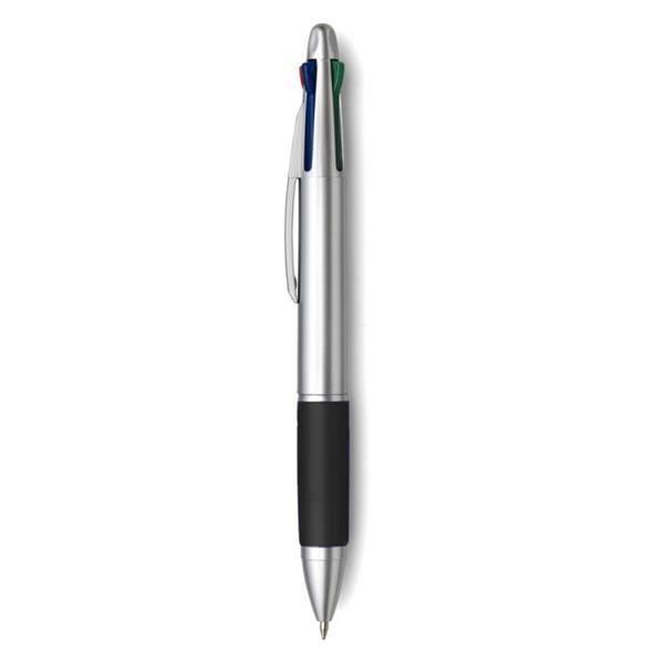 Długopis z gumowym uchwytem, 4 kolory wkładu: czerwony, niebieski, zielony i czarny