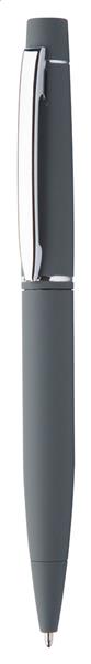 Metalowy długopis z gumowanym korpusem i niebieskim wkładem. Idealny pod grawer lustrzany.