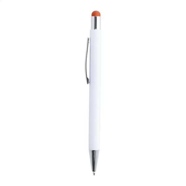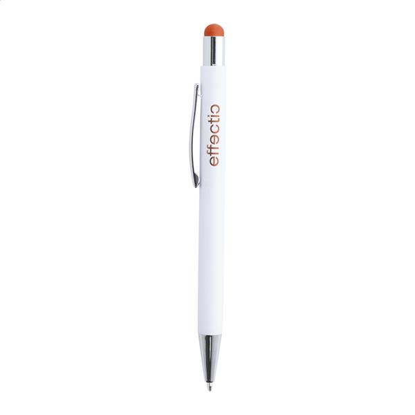 Aluminiowy długopis z końcówką do ekranów dotykowych i powłoką pod kolorowy grawer. Niebieski wkład.