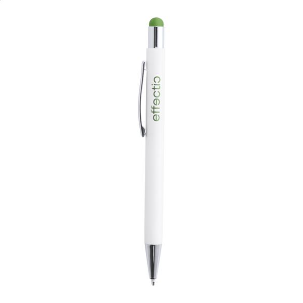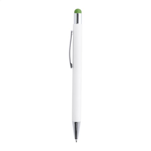 Aluminiowy długopis z końcówką do ekranów dotykowych i powłoką pod kolorowy grawer. Niebieski wkład.