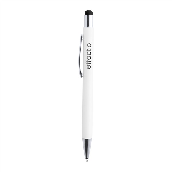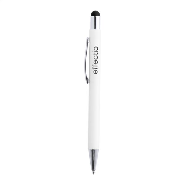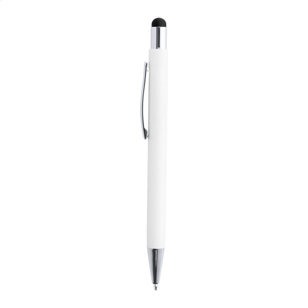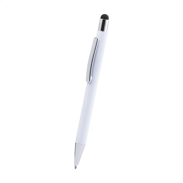 Aluminiowy długopis z końcówką do ekranów dotykowych i powłoką pod kolorowy grawer. Niebieski wkład.