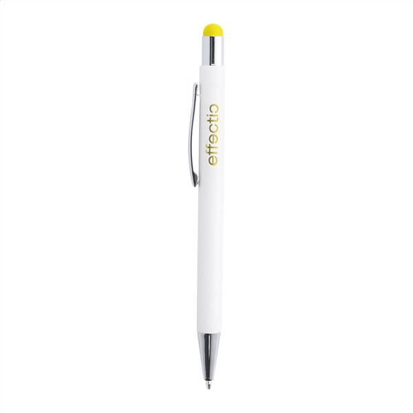Aluminiowy długopis z końcówką do ekranów dotykowych i powłoką pod kolorowy grawer. Niebieski wkład.