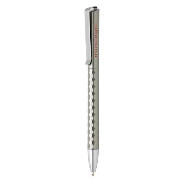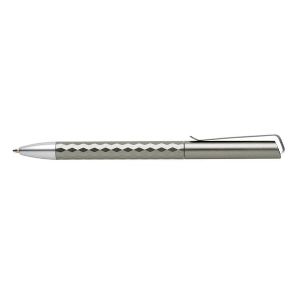 Długopis z metalowym klipem, diamentowy wzór na trzonie, niemiecki wkład Dokumental® w kolorze niebieskim w komplecie, długość pisania ok. 1200 m, kulka TC zapewnia wygodne pisanie, ślad węglowy produktu: 0,07 kg CO2