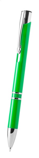 Plastikowy długopis z błyszczącym klipem i końcówką. Z niebieskim wkładem.