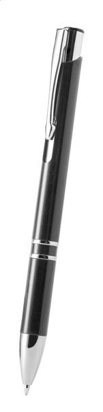 Plastikowy długopis z błyszczącym klipem i końcówką. Z niebieskim wkładem.