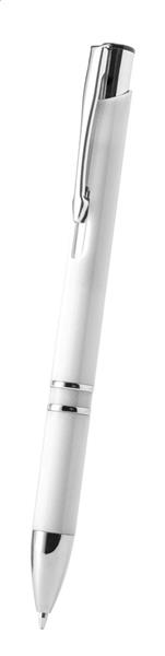 Plastikowy długopis z błyszczącym klipem i końcówką. Z niebieskim wkładem.