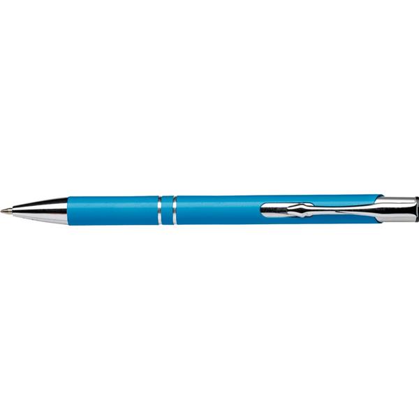 Długopis wykonany z aluminium z recyklingu z kolorowym trzonem i srebrnymi elementami