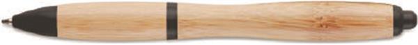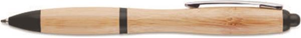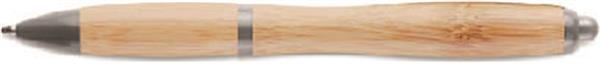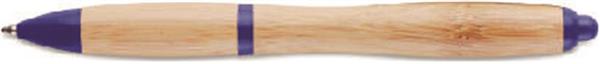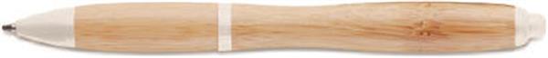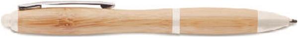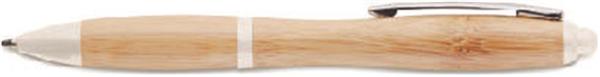 Wciskany długopis z korpusem z bambusa oraz elementami z ABS. Niebieski tusz. Bambus jest produktem naturalnym, dlatego mogą wystąpić nieznaczne różnice w kolorze, wzorze i rozmiarze.