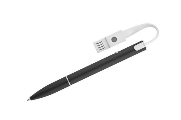 Długopis CHARGE to idealna opcja dla tych, którzy często gubią kable do ładowania. Jego klip został wykonany ze sprytnie umocowanego na magnes kabla służącego do ładowania urządzeń mobilnych oraz do przesyłania danych. Kabel z wtyczką uniwersalną 2 w 1: microUSB oraz typu IPhone. Długopis w całości wykonany z metalu o gumowanej powierzchni. Mechanizm włączający typu twist. Wkład o grubości 1.0 mm w kolorze niebieskim.