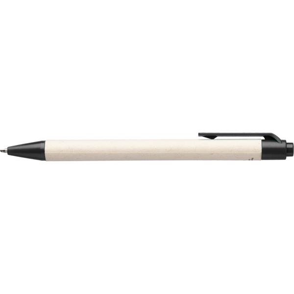 Długopis z kolorowym klipem, można go przyczepić do notatnika lub koszuli, ikona ABS z recyklingu na produkcie, wyróżnia go nietypowy materiał wykonania, produkt wykonany z kartonika po mleku z recyklingu i ABS