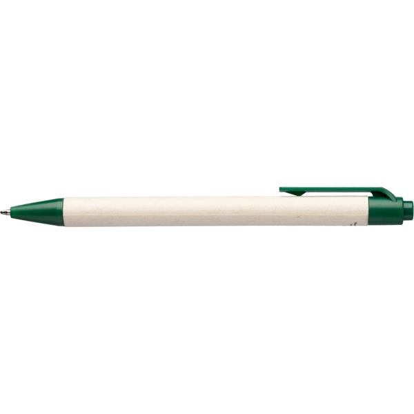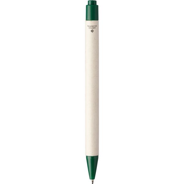 Długopis z kolorowym klipem, można go przyczepić do notatnika lub koszuli, ikona ABS z recyklingu na produkcie, wyróżnia go nietypowy materiał wykonania, produkt wykonany z kartonika po mleku z recyklingu i ABS