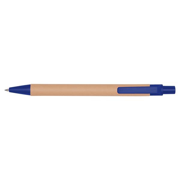 Długopis z kolorowymi elementami, wkład w niebieskim kolorze, trzon wykonany z kartonu z recyklingu