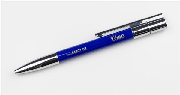 Wykonany z aluminium gustowny długopis wyposażony został w przenośną pamięć USB o pojemności 8 GB. Pamięć umieszczona została nad klipem długopisu. Standard usb: 2.0; szybkość zapisu: 4,5 MB/s; szybkość odczytu: 25,0 MB/. Pamięć USB objęta jest 5 letnią gwarancją producenta oraz posiada certyfikat CE.