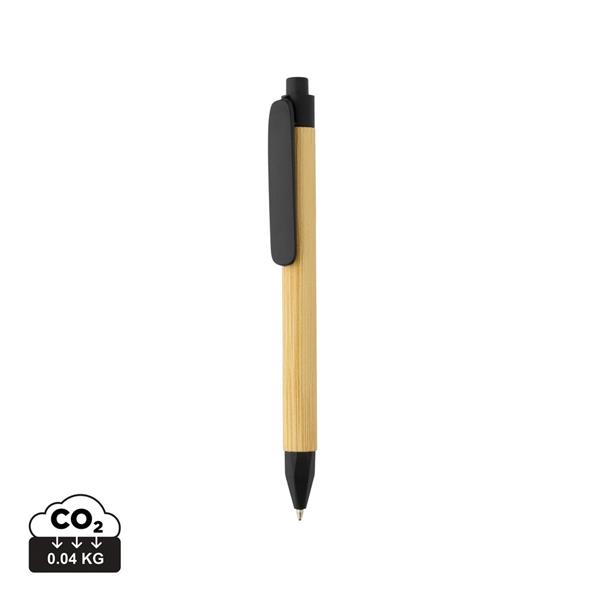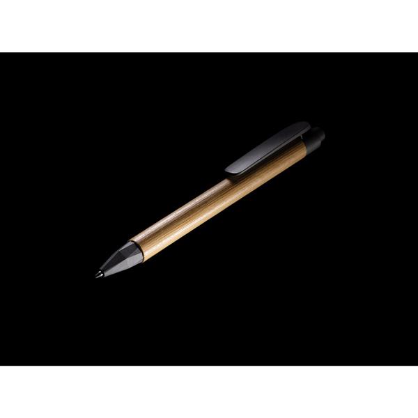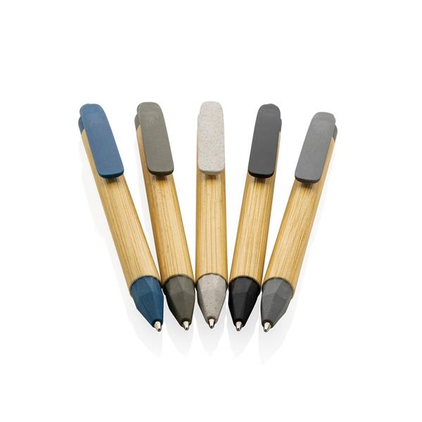 Długopis, wykonany z papieru z recyklingu, bambusowy wzór na trzonie, klip ze słomy pszenicznej, niemiecki wkład Dokumental® w kolorze niebieskim w komplecie, długość pisania ok. 1000 m, kulka TC zapewnia wygodne pisanie, ślad węglowy produktu: 0,03 kg CO2