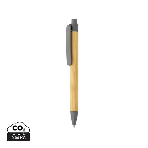 Długopis, wykonany z papieru z recyklingu, bambusowy wzór na trzonie, klip ze słomy pszenicznej, niemiecki wkład Dokumental® w kolorze niebieskim w komplecie, długość pisania ok. 1000 m, kulka TC zapewnia wygodne pisanie, ślad węglowy produktu: 0,03 kg CO2