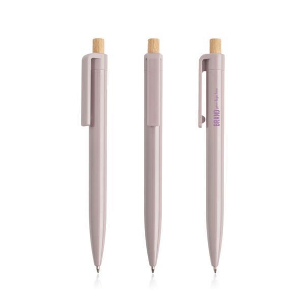 Długopis z recyklingowanego ABS z bambusowym detalem. Recyklingowany długopis o unikalnym kolorze i bambusowym przyciskiem. Z mechanizmem wciskanym i piszący na niebiesko, jest doskonałym wyborem na prezent, który promuje markę i wspiera ochronę środowiska.
