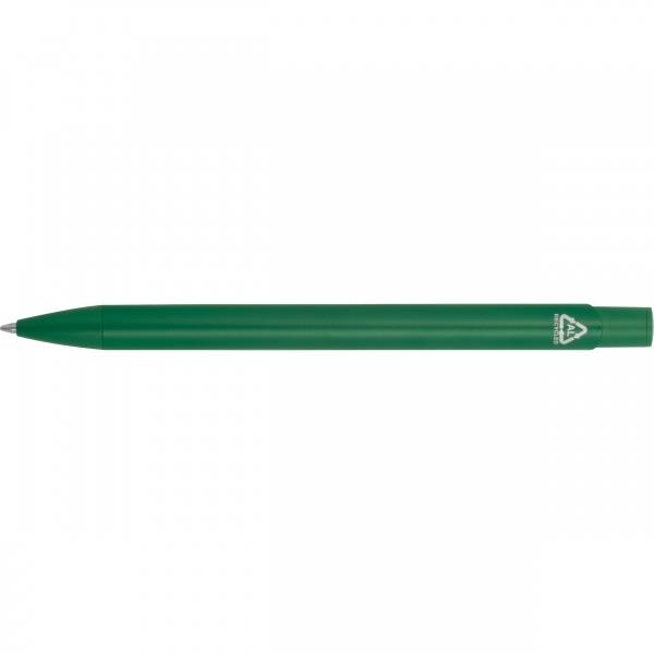 Długopis wykonany z recyklingowego aluminium z niebieskim wkładem o dużej pojemności.