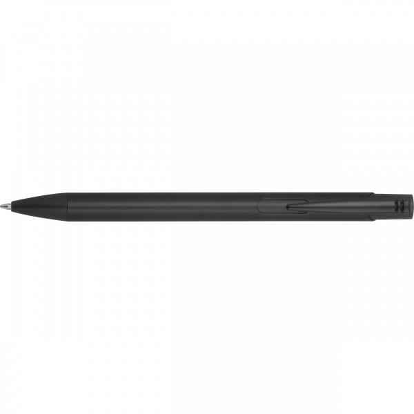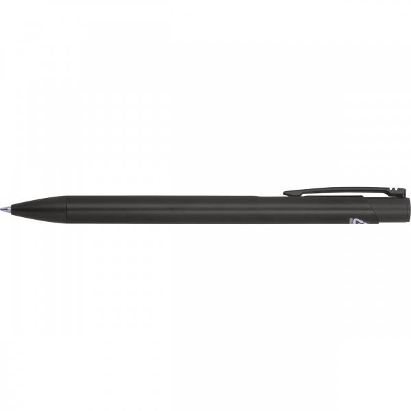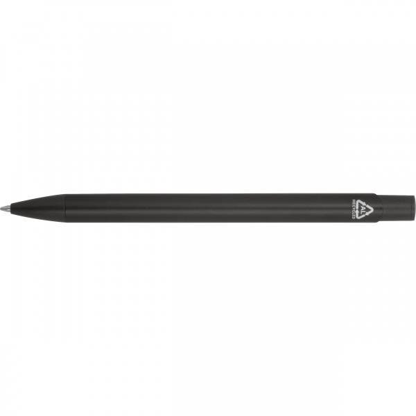 Długopis wykonany z recyklingowego aluminium z niebieskim wkładem o dużej pojemności.