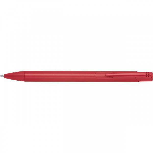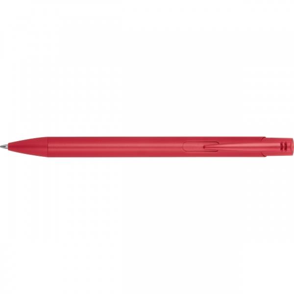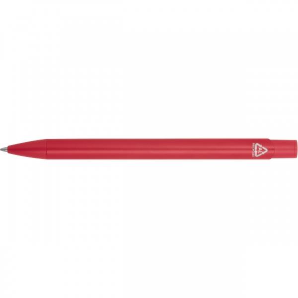 Długopis wykonany z recyklingowego aluminium z niebieskim wkładem o dużej pojemności.