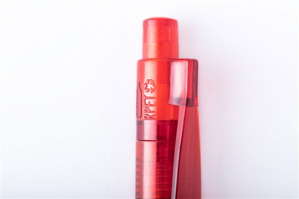 Transparentny, plastikowy długopis z RPET. Z niebieskim wkładem.