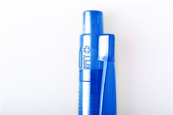 Transparentny, plastikowy długopis z RPET. Z niebieskim wkładem.