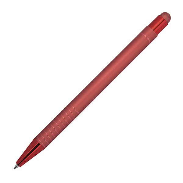 Długopis z końcówką do ekranów dotykowcyh touch-pen. Posiada błyszczące, lustrzane wykończenie.