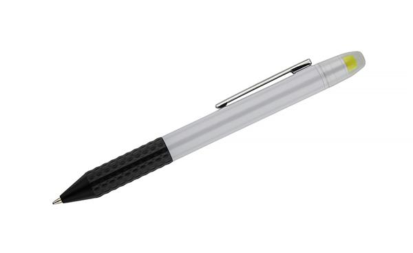 Długopis FLUO to praktyczne połączenie długopisu i zakreślacza w jednym korpusie. Wyposażony w mechanizm przekręcany oraz metalowy klips, łączy wygodę pisania z możliwością podkreślania notatek. Zakreślacz w formie kredki nie wysycha i jest zawsze gotowy do użycia. Kompaktowa konstrukcja sprawia, że FLUO sprawdzi się w biurze, na uczelni i w podróży.
