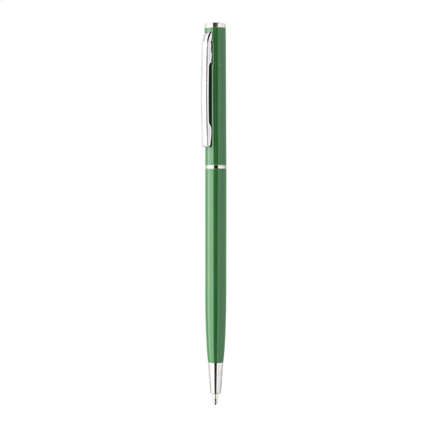 Aluminiowy długopis z niebieskim wkładem.