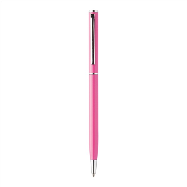 Aluminiowy długopis z niebieskim wkładem.
