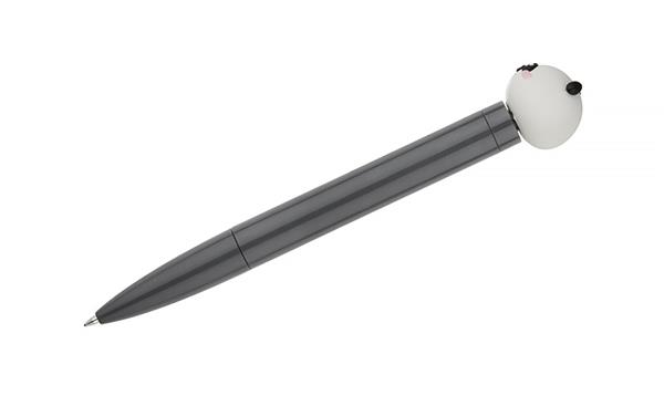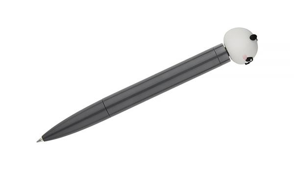 Długopis SKIPPI z motywem pandy to połączenie praktycznego narzędzia do pisania i zabawnego gadżetu antystresowego. Wyposażony w przekręcany mechanizm typu twist oraz końcówkę w formie spinnera z wizerunkiem pandy. Lakierowane wykończenie nadaje mu połysk i przyjemny wygląd, a tusz olejowy o grubości pisania 0,7 mm zapewnia płynny, równy zapis. To oryginalny gadżet, który sprawdzi się w biurze, szkole lub jako drobny upominek reklamowy.