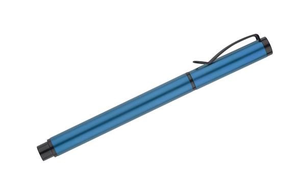 Długopis CHEN to oryginalny i niezwykle elegancki produkt wykonany z lekkiego aluminium. Wykończenie w kolorze czarnym gustownie dopełnia wyraziste kolory korpusu, a unikalna w formie zatyczka z niestandardowym klipem nadaje temu długopisowi niepowtarzalny charakter. Wkład żelowy w kolorze niebieskim o grubości linii 0,5 mm zapewnia płynność pisania.