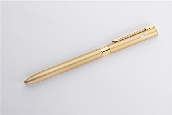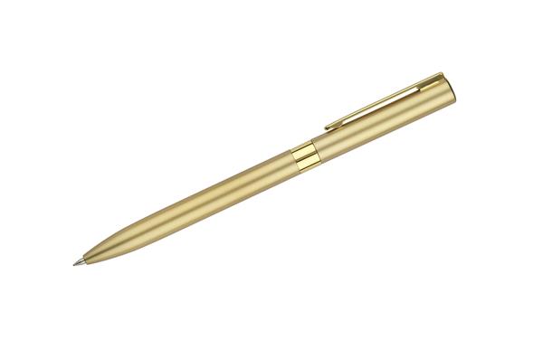 Długopis GELLE to elegancja i wygoda pisania w jednym. Długopis wykonany jest z metalu z wykończeniami chromowanymi lub złoconymi i posiada mechanizm typu twist. Żelowy wkład o grubości 0,5 mm w kolorze niebieskim.