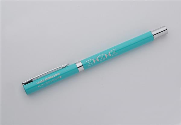 IDEO to długopis żelowy o klasycznym kształcie. Wykonany jest z metalu pokrytego farbą o żywych kolorach. Wykończenia chromowane. Cienko piszący wkład żelowy o grubości 0.5 mm w kolorze niebieskim.