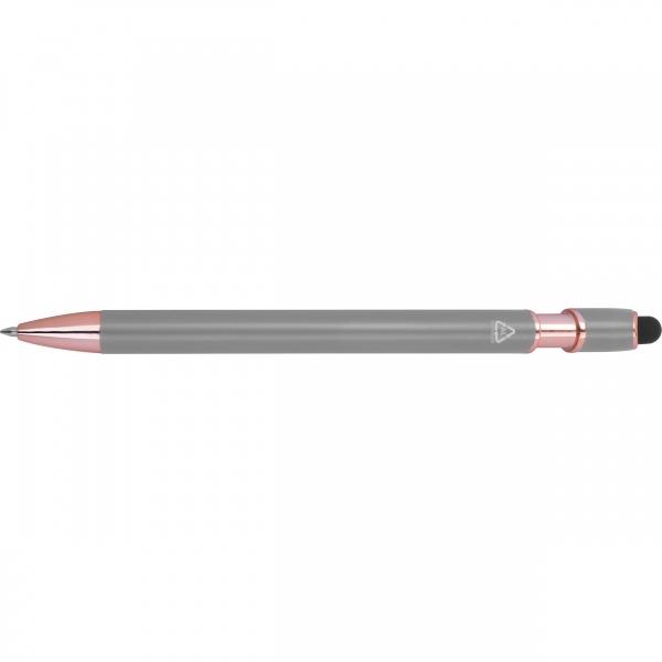 Długopis żelowy wykonany z recyklingowego aluminium z funkcją touch pen i niebieskim wkładem o dużej pojemności (końcówka 1 mm).