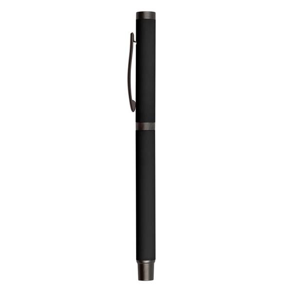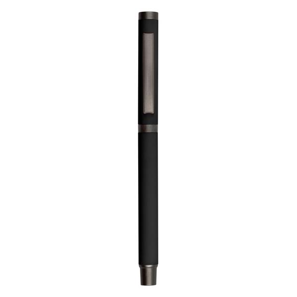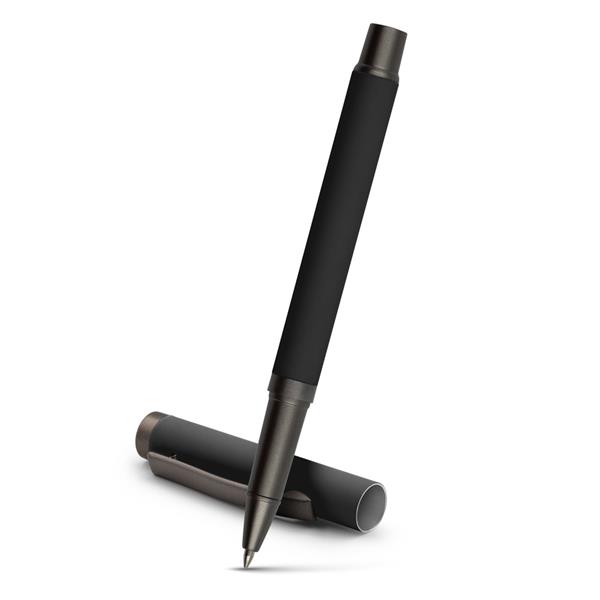 Długopis z gumowanym wykończeniem i dopasowaną kolorystycznie zatyczką z szarym klipem, żelowy wkład 0.7 mm, długość pisania do 500 m