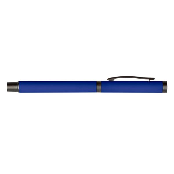 Długopis z gumowanym wykończeniem i dopasowaną kolorystycznie zatyczką z szarym klipem, żelowy wkład 0.7 mm, długość pisania do 500 m