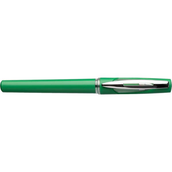 Długopis żelowy z zatyczką, dodatkowy otwór w zatyczce, posiada czarny wkład, produkt wykonany z ABS